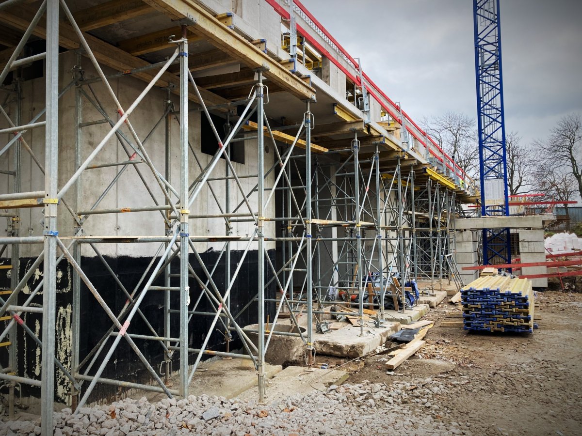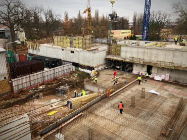 Na parkovacím domě dokončujeme monolitické konstrukce, na objektu D jsme začali zdít nosné zdivo ve 2 NP a na objektu C pracujeme na podbednění celého stropu v 1 NP.