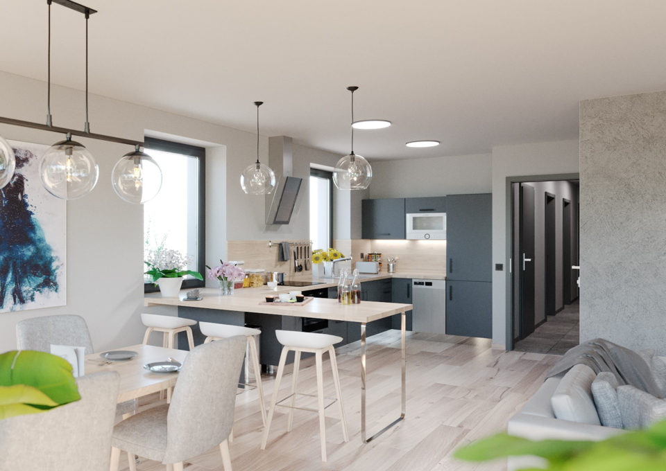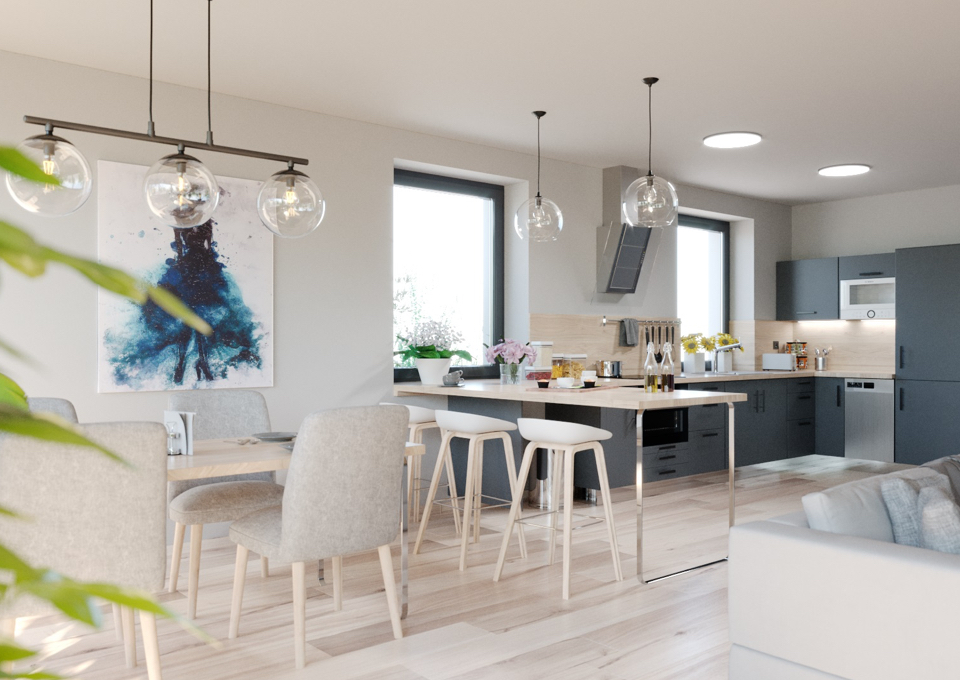 Koncept zdravého a energeticky hospodárného bydlení zajišťuje centrální rekuperace vzduchu, okna s izolačními trojsky, ale i architektura využívající světových stran. Spolu s konstrukcí tlumící okolní ruch nabízí opravdový klid vašeho domova.
